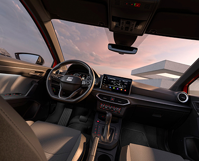 Det er ikke kun uden på, at SEAT Ibiza har et sporty design. Også interiøret skiller sig ud med et stilrent instrumentbræt, og luftdyser oplyst af ambient light*, der skaber en unik indvendig atmosfære.